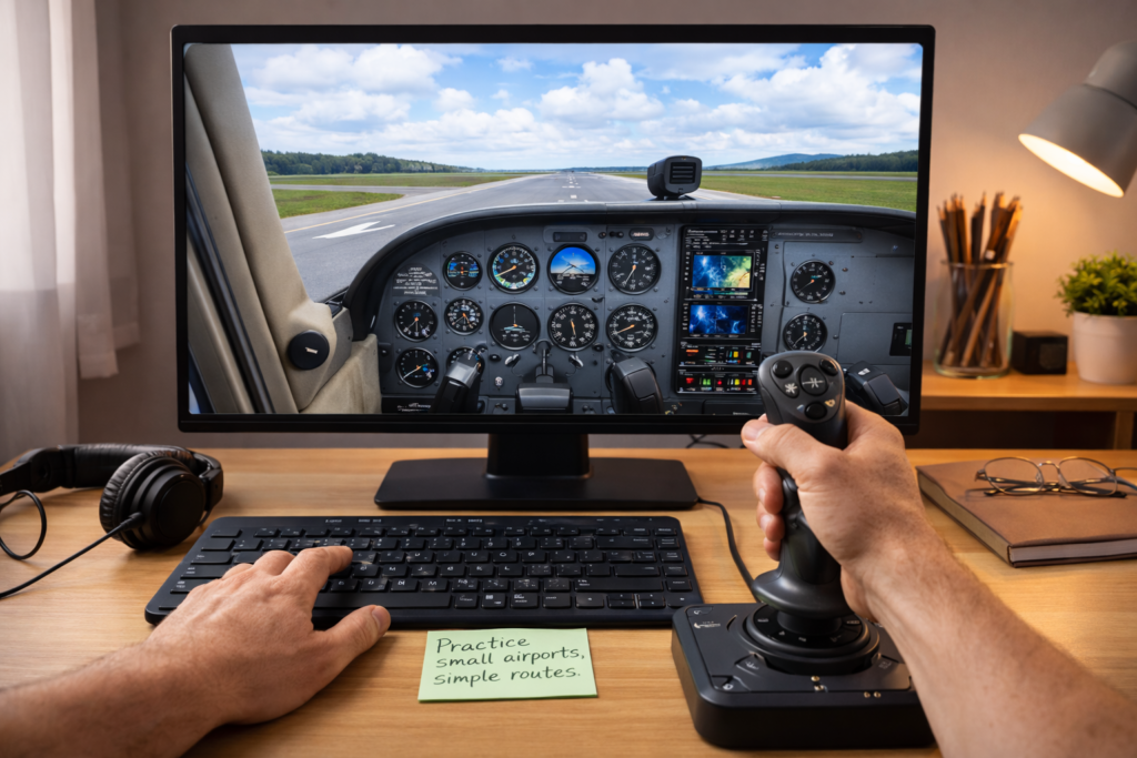As your confidence grows, structured flying can add depth to your sessions. Planning routes, managing fuel, and flying realistic procedures—whether VFR or IFR—helps your simulator feel less like a game and more like a true training environment.